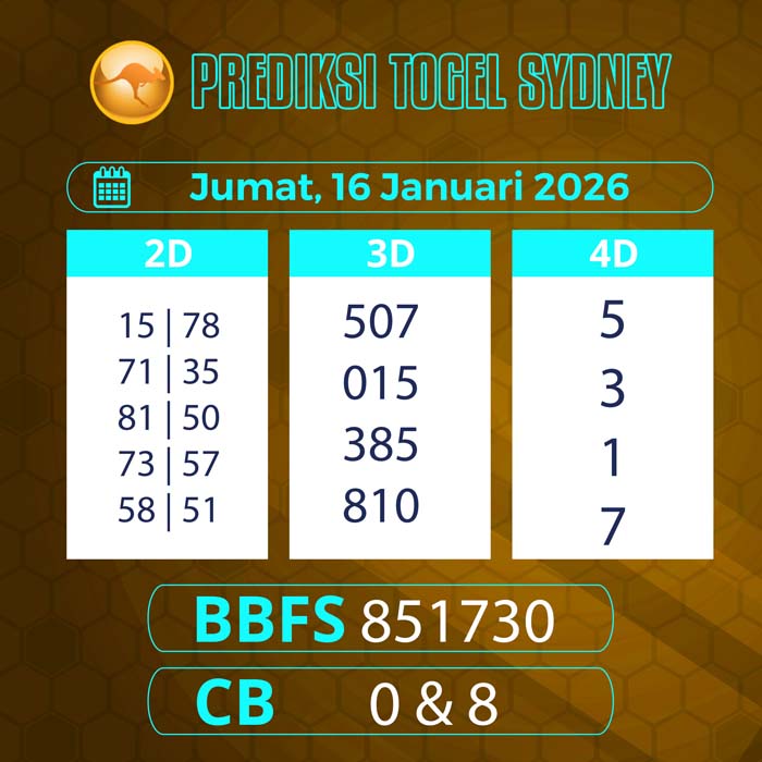 PREDIKSI TOGEL SYDNEY TERBARU JUMAT 16 JANUARI 2026 – Selamat datang untuk semua sobat tercinta di situs terbaik yang akan membantu sobat dalam memberikan angka main sydney hari ini.
