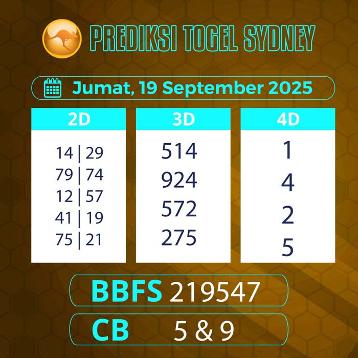 PREDIKSI TOGEL SYDNEY TERBARU JUMAT 19 SEPTEMBER 2025 – Selamat datang untuk semua sobat tercinta di situs terbaik yang akan membantu sobat dalam memberikan angka main sydney hari ini.