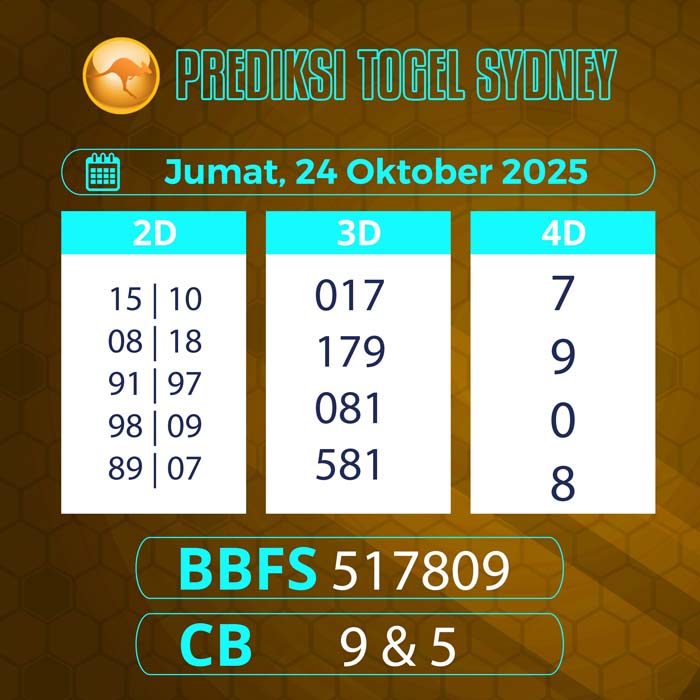 PREDIKSI TOGEL SYDNEY TERBARU JUMAT 24 OKTOBER 2025 – Selamat datang untuk semua sobat tercinta di situs terbaik yang akan membantu sobat dalam memberikan angka main sydney hari ini.