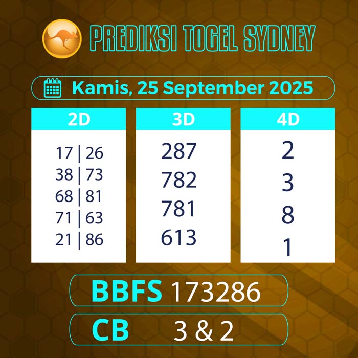 PREDIKSI TOGEL SYDNEY TERBARU PRIZE KAMIS 25 SEPTEMBER 2025