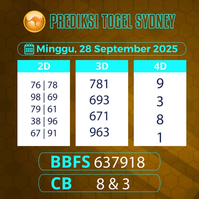 PREDIKSI TOGEL SYDNEY TERBARU MINGGU 28 SEPTEMBER 2025 – Selamat datang untuk semua sobat tercinta di situs terbaik yang akan membantu sobat dalam memberikan angka main sydney hari ini.