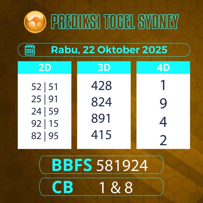 PREDIKSI TOGEL SYDNEY TERBARU RABU 22 OKTOBER 2025 – Selamat datang untuk semua sobat tercinta di situs terbaik yang akan membantu sobat dalam memberikan angka main sydney hari ini.