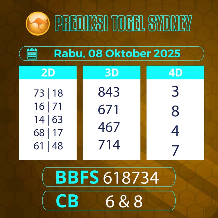 PREDIKSI TOGEL SYDNEY TERBARU RABU 8 OKTOBER 2025 – Selamat datang untuk semua sobat tercinta di situs terbaik yang akan membantu sobat dalam memberikan angka main sydney hari ini.