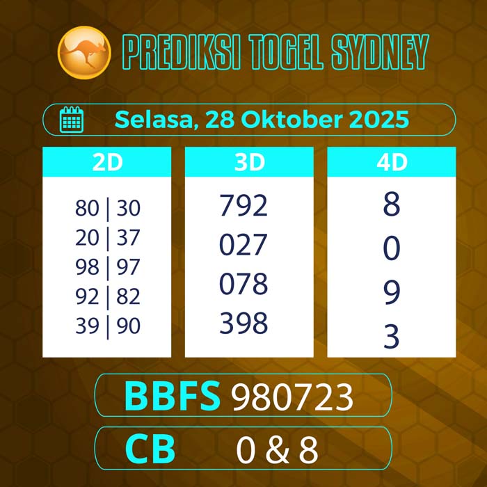 PREDIKSI TOGEL SYDNEY TERBARU SELASA 28 OKTOBER 2025 – Selamat datang untuk semua sobat tercinta di situs terbaik yang akan membantu sobat dalam memberikan angka main sydney hari ini.