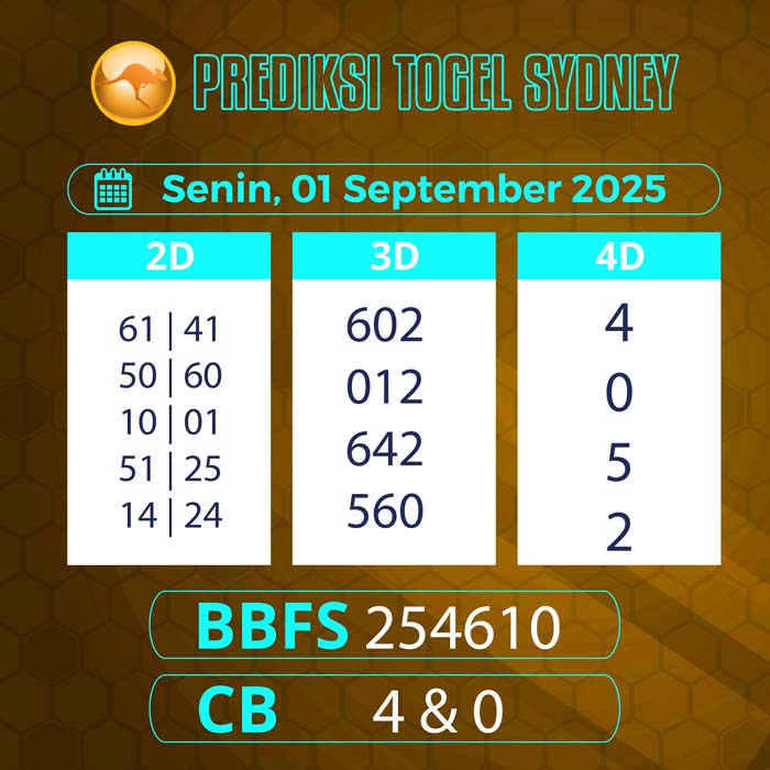 PREDIKSI TOGEL SYDNEY TERBARU SENIN 1 SEPTEMBER 2025 – Selamat datang untuk semua sobat tercinta di situs terbaik yang akan membantu sobat dalam memberikan angka main sydney hari ini.