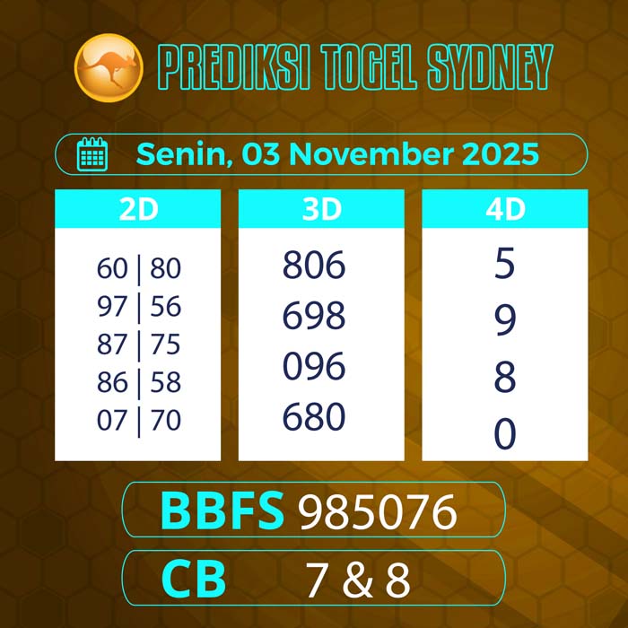 PREDIKSI TOGEL SYDNEY TERBARU SENIN 3 NOVEMBER 2025 – Selamat datang untuk semua sobat tercinta di situs terbaik yang akan membantu sobat dalam memberikan angka main sydney hari ini.