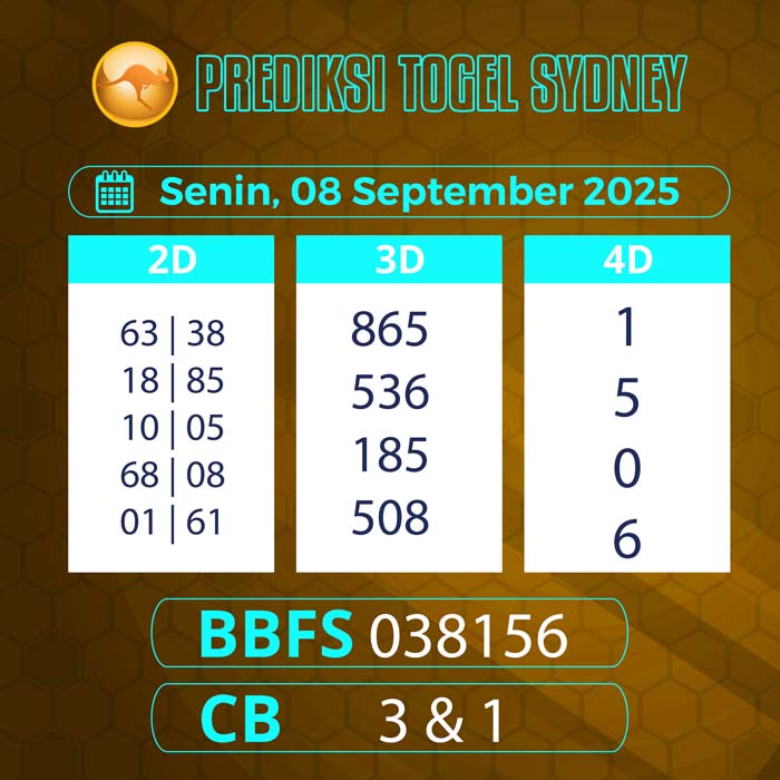 PREDIKSI TOGEL SYDNEY TERBARU SENIN 8 SEPTEMBER 2025 – Selamat datang untuk semua sobat tercinta di situs terbaik yang akan membantu sobat dalam memberikan angka main sydney hari ini.